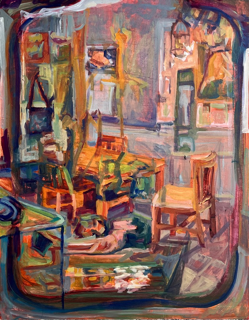 - Us in Kitchen, 14’’ x 18’’, Oil on wood, 2024