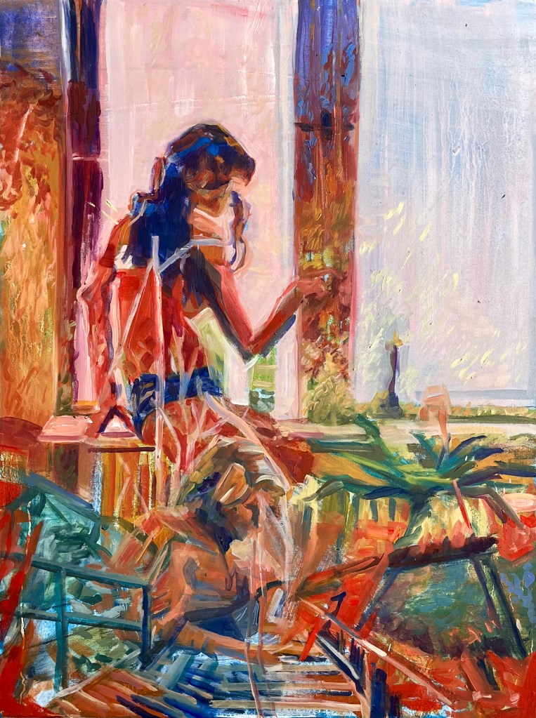 - Us in Mourning, 18’’ x 24’’, Oil on wood, 2024