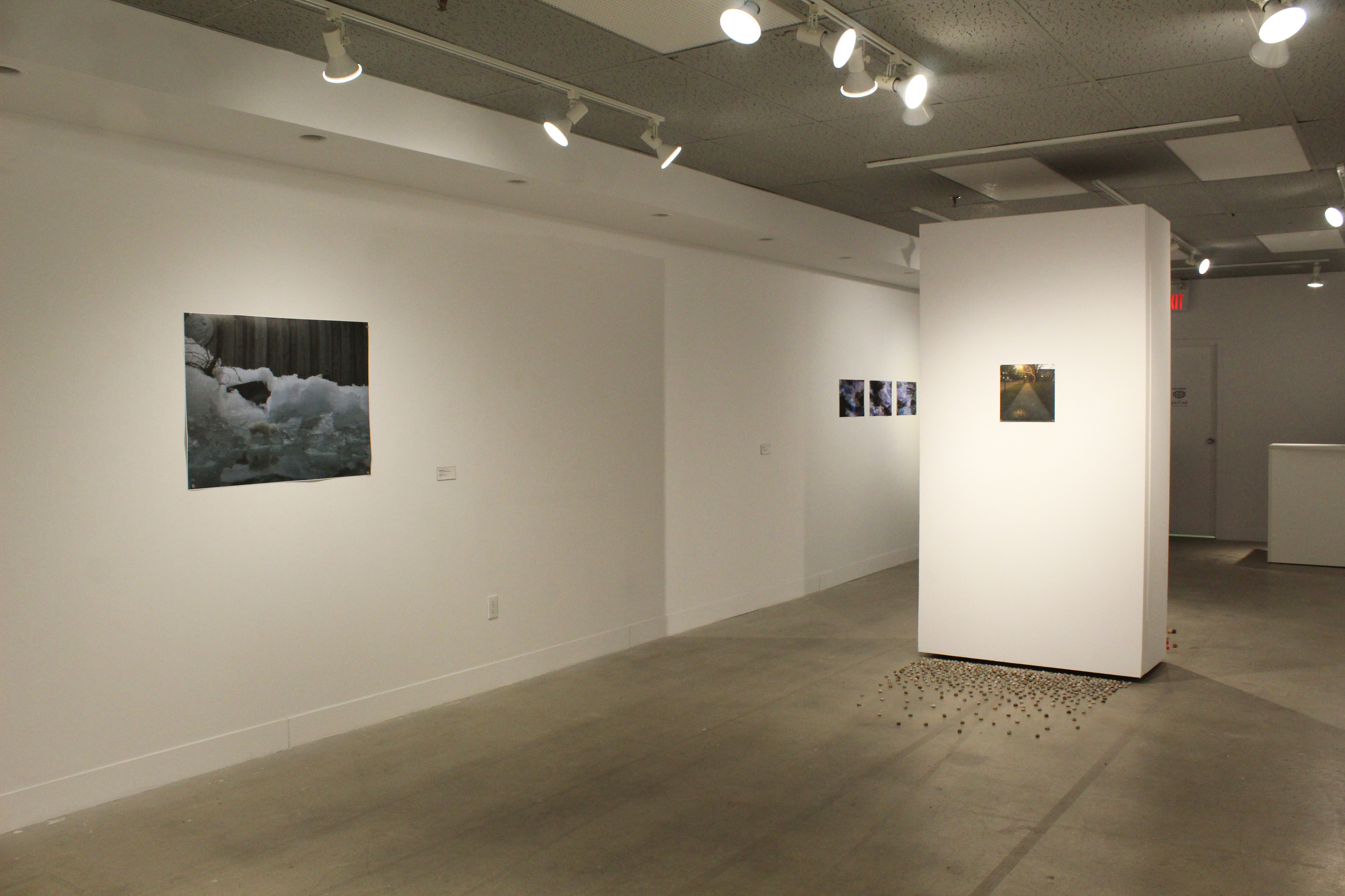 Barren | Breach addresses human interaction in the natural and built environment. The exhibition includes both digital prints and installation works that have been created in response to particular sites. Evan Willemse intervenes into the gallery space with artificially coloured cast objects. Nicole Caron constructs miniatures using found materials where sudden shifts in scale photographically challenge our perception of our surroundings, while Brittany Caron focuses on sensitively capturing human impact on the natural world using layers of photographic and drawn elements.