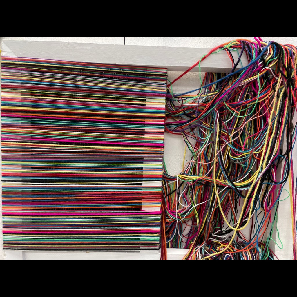 wood, yarn, 35 7/8” x 23 7/8”, 2023