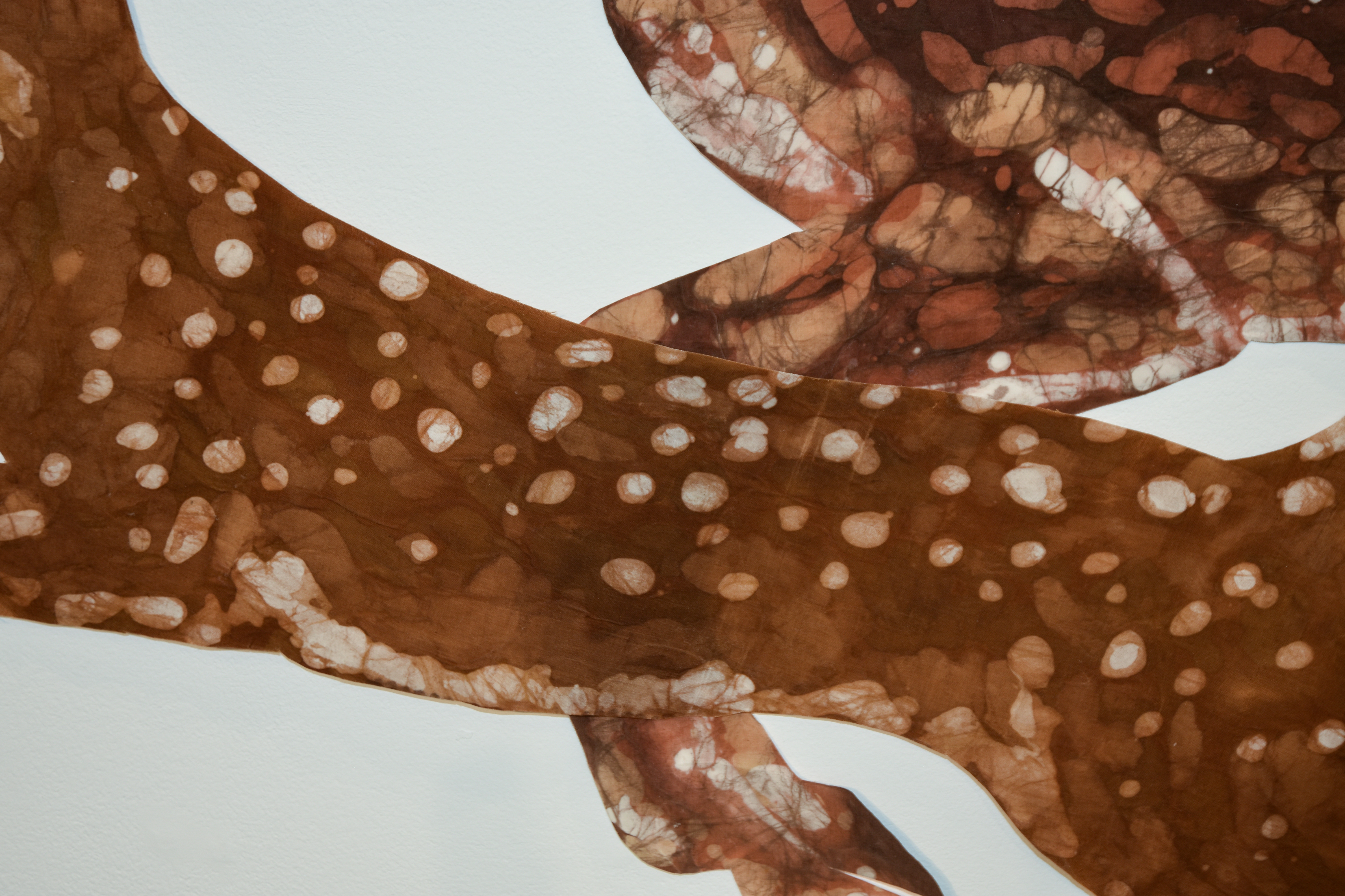 Patchwork is a collaborative exhibition by Emily Singer and Clara Tuckey in response to environmental vulnerability and human-led destruction. Both artists use textiles to stitch natural forms, attempting to patch together a new environment and perception of the natural world. Through inventive dying and stitching techniques, the use of found and sourced materials and great attention to detail, the works reflect the intricate and enduring qualities of the world around us.