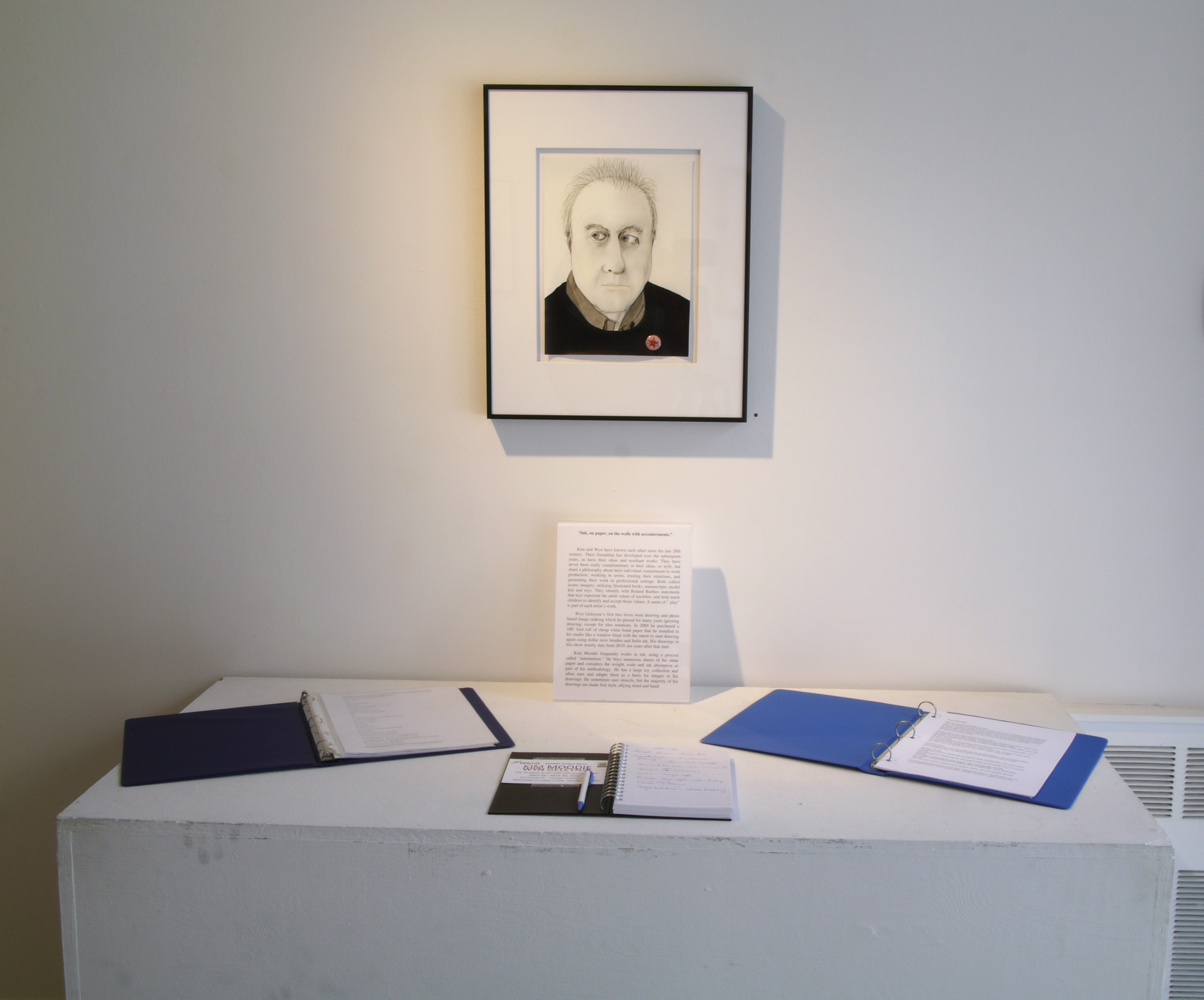 Wyn Geleynse’s first two loves were drawing and photo based image making which he pursued for many years ignoring drawing, except for idea notations. In 2009 he purchased a 100’ foot roll of cheap white bond paper that he installed in his studio like a window blind with the intent to start drawing again using dollar store brushes and India ink. His drawings in this show mostly date from 2019, ten years after that start.