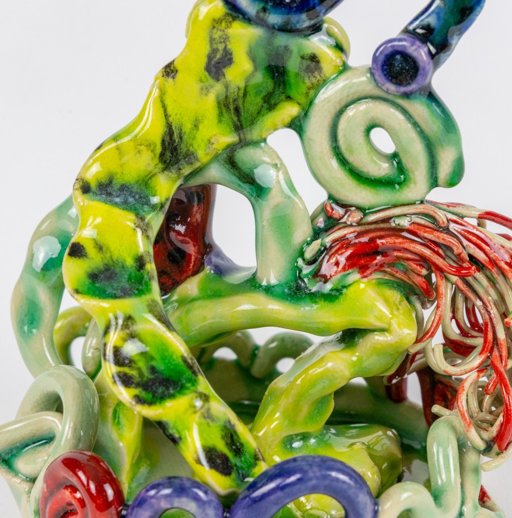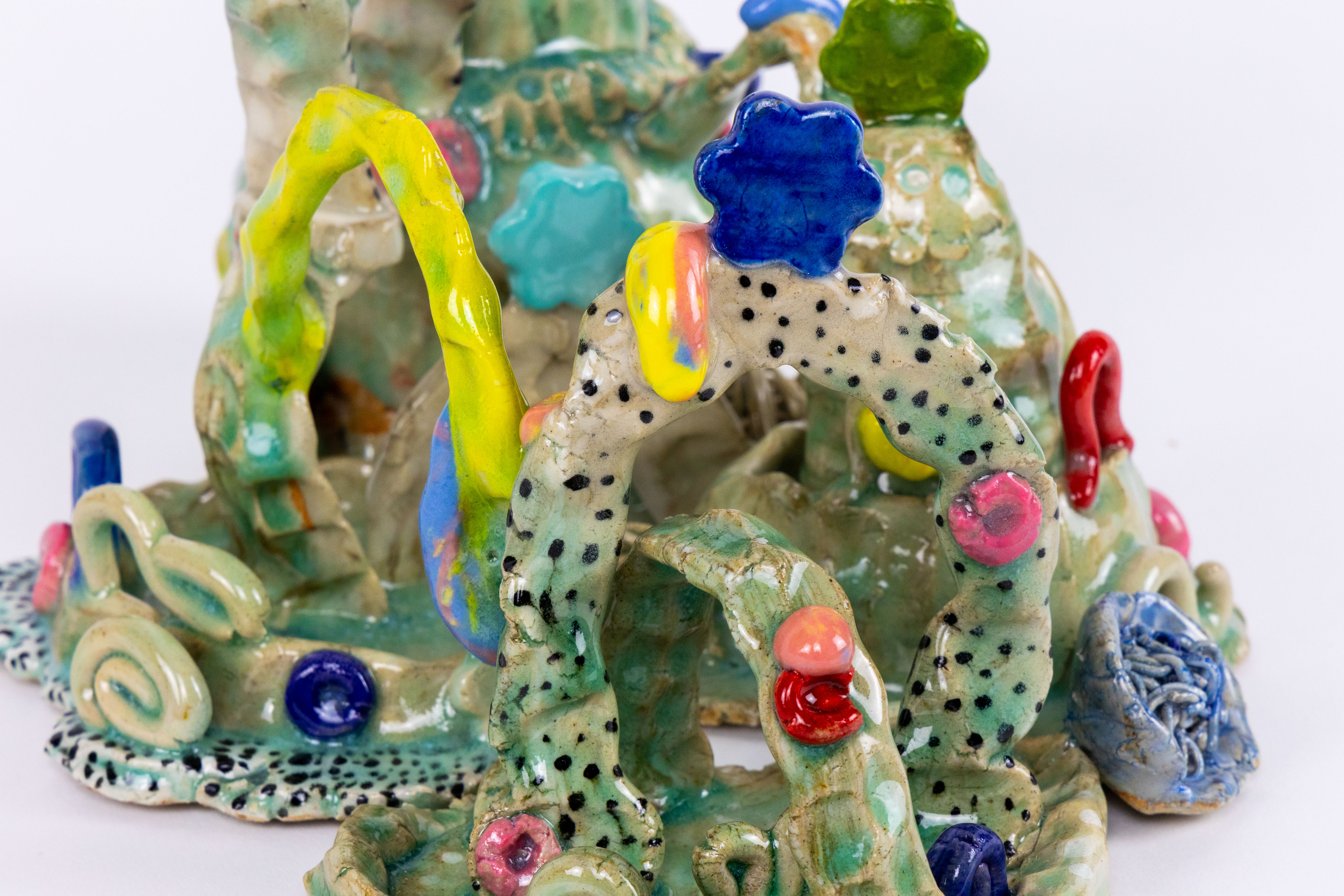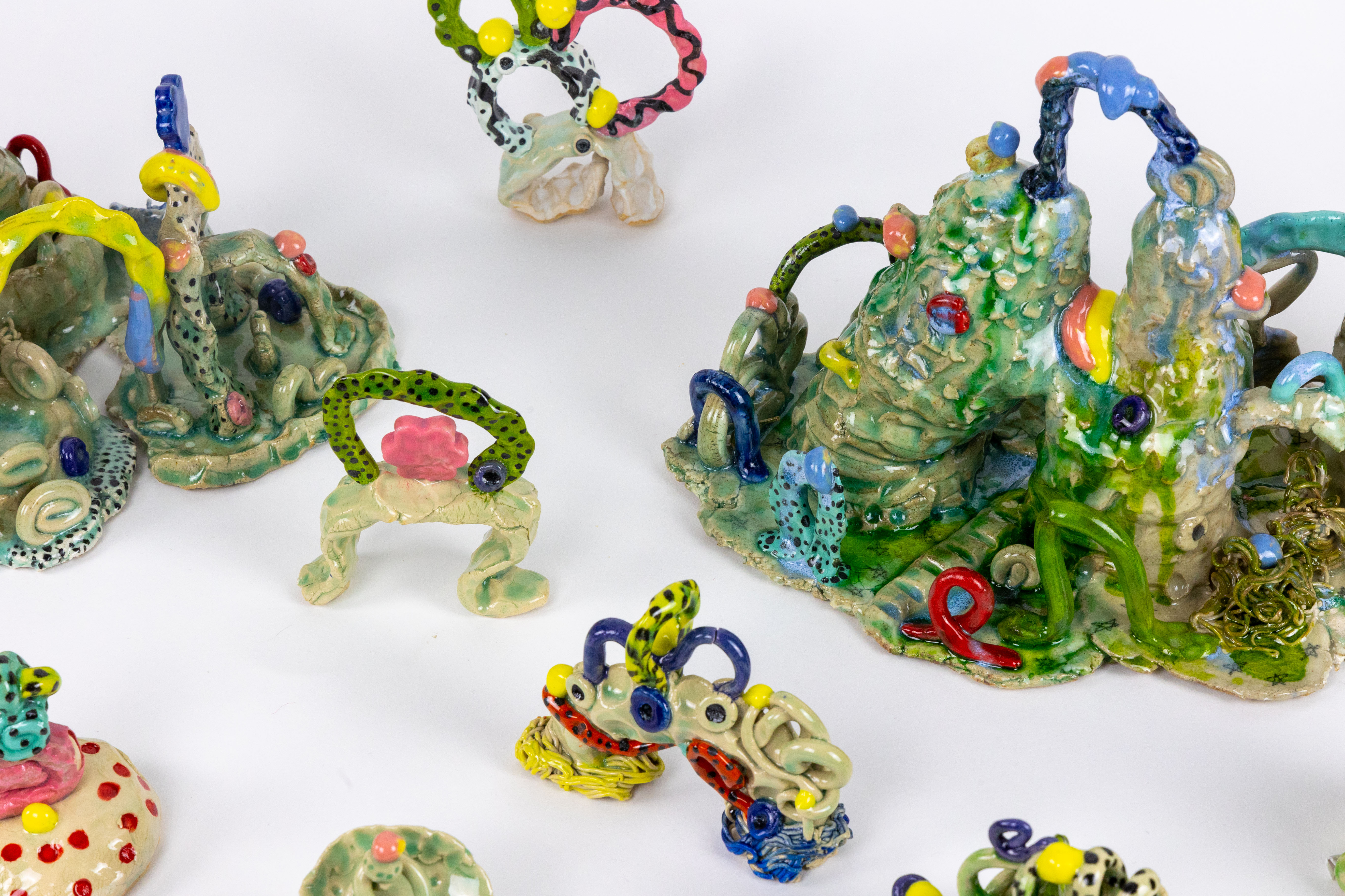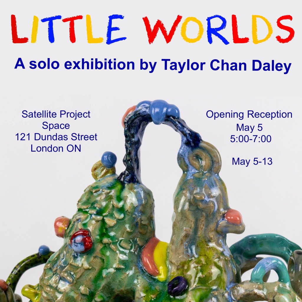 Little Worlds is a solo show by Taylor Chan Daley riddled with whimsical and spirited forms inspired by her resonation with ceramic vessels tied to eras passed. The evolution of ceramics has had many turning points throughout history that were thoughtful yet spontaneous; comparatively so, this can be said about each individual piece’s creation. Her inspiration is drawn from ornate function while walking the line between modern day society and past historian potters. Bringing in the new while simultaneously honouring the ones that came before.