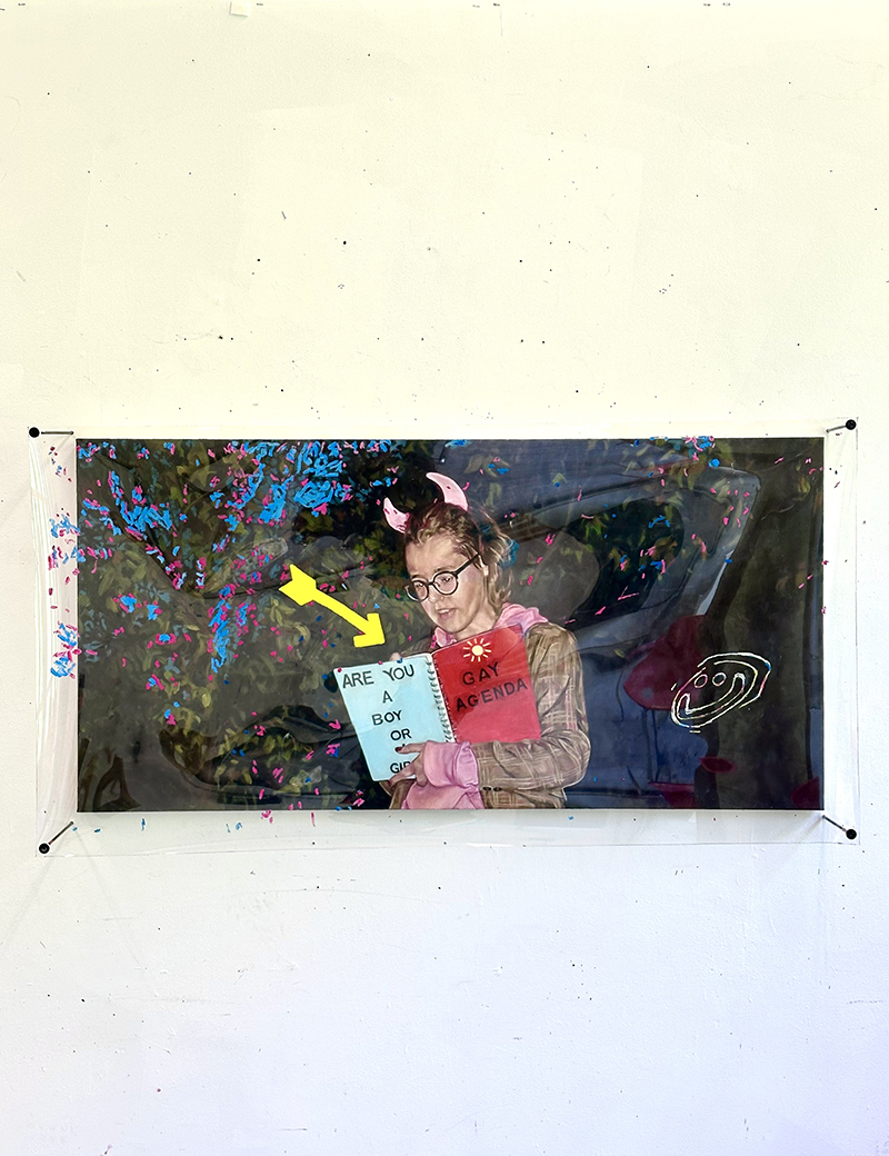 The Digital Fourth Wall is on view in the Cohen Commons, John Labatt Visual Arts Centre, from June 26 – July 10, 2025. The exhibition combines the work of Western University MFA candidates Natasha Beaudoin and Moira Hayes. Each artist studies the evolving Gen Z culture that emerges online and penetrates the real, offline world. Beaudoin and Hayes’ work meets at the intersection of reality and this generational view through a screen.