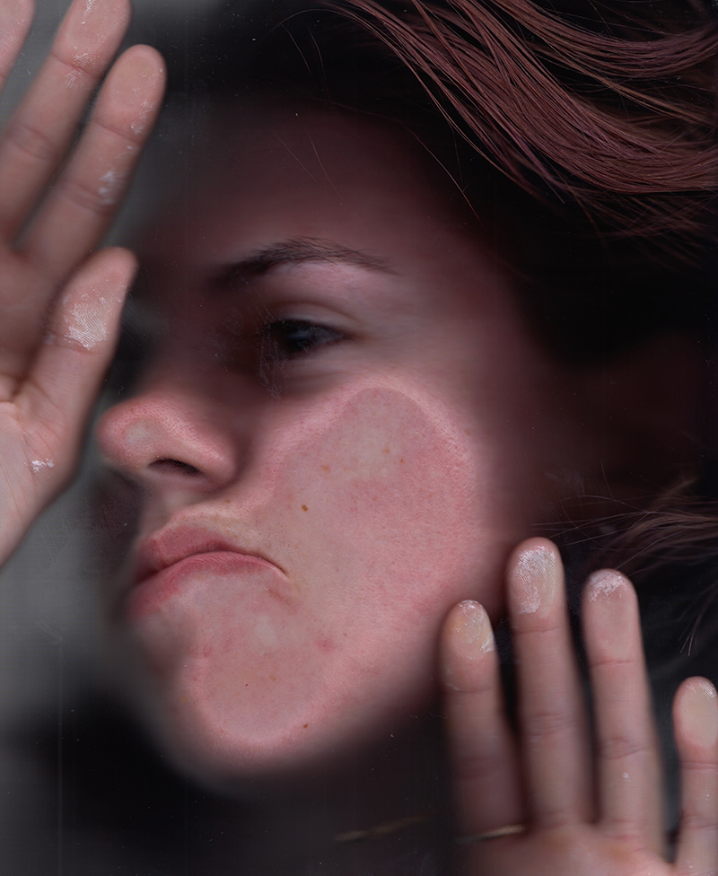 This glow is to show the separation between in-person and digital presence. So, kind of another [state of] being, you could say. And this relationship is meant to mediate the life that I have where presence and intimacy are separated by a flash, and you could read it as a narrative.