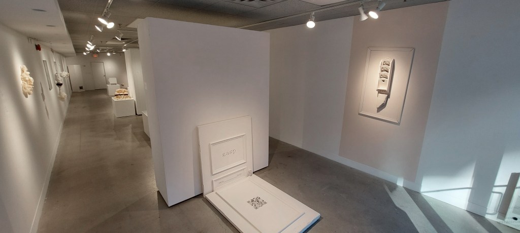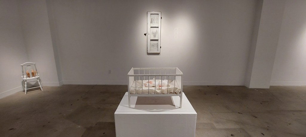 Raised in family decay, and later estranged, Ontario-based artist Brittany/Andrew Forrest’s understanding of the self was fermented, and all peculiarities were tapered into her environment. This disorientation led her to uphold variegated connection as the solution. In Gasp, Forrest acknowledges the terror within sociological systems that oppose and suppress the psychology of individuality. She highlights aberrations within social perceptions, including the intrusiveness of classification, and that we find complacent security within the alignments. This false sense of indemnification prompts redefining the ‘norm’ as abolishing normalization.