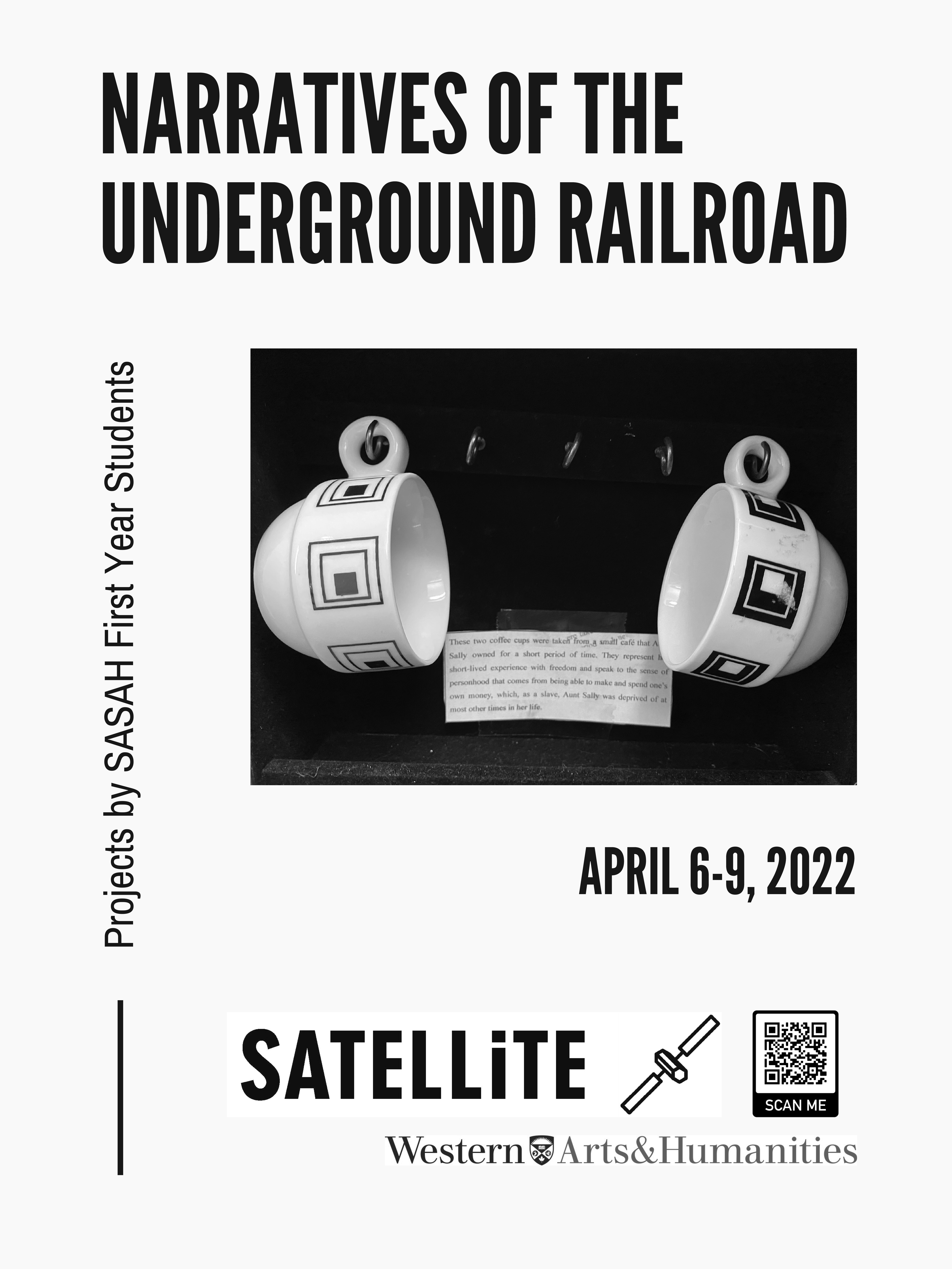 The works in this exhibition grew out of an archival project the first-year SASAH students did in the Fall of 2021. The rare book library at Western has some thirteen autobiographies published in the 19th century by people who had been enslaved in the United States but escaped to Canada via the Underground Railroad. For the project, the students were divided up into groups of two or three or students worked independently, and each group researched and responded to one of the autobiographies.